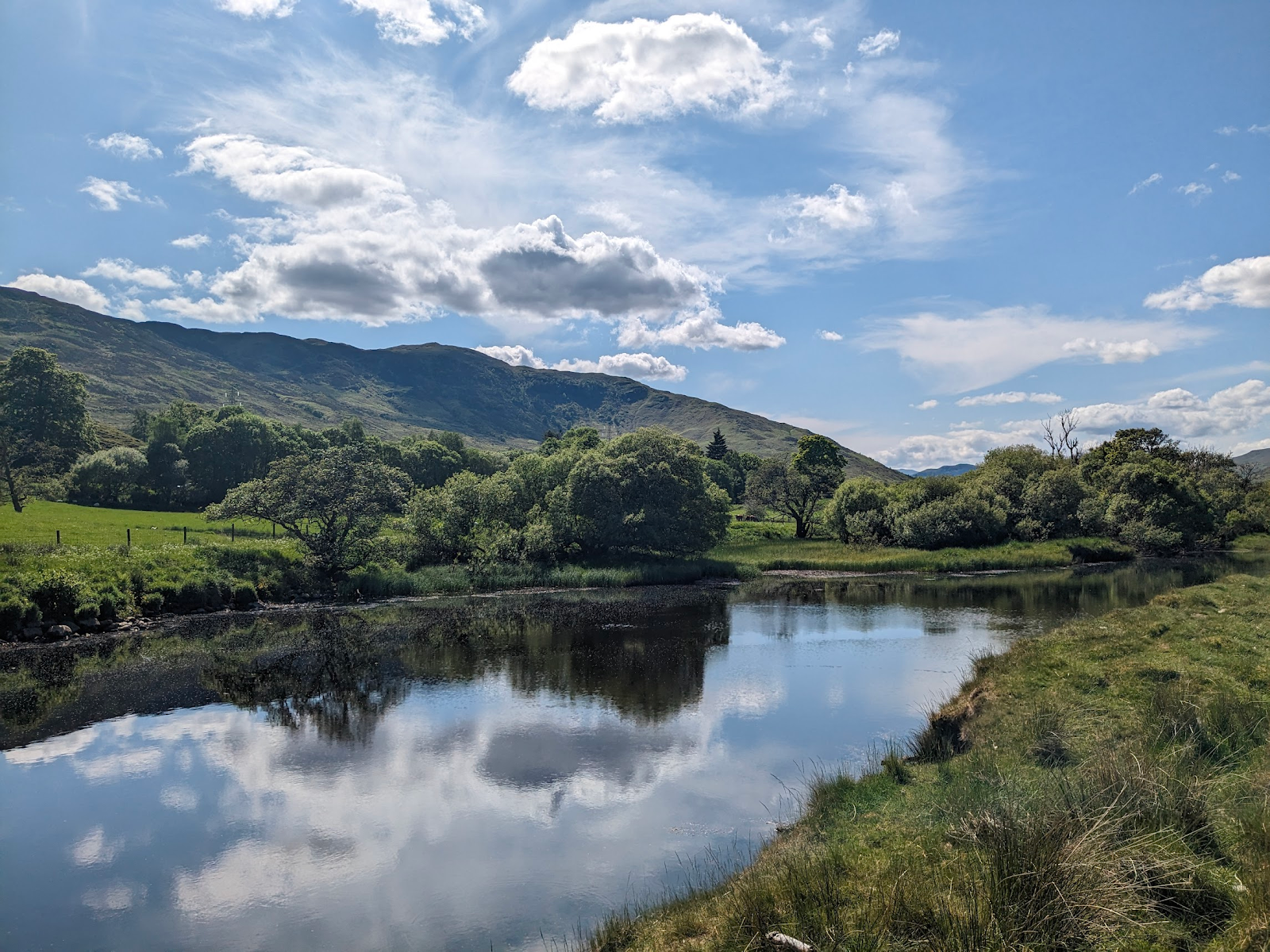 But, let's be clear... all shackles of society had been cast away the very moment we had stepped foot on the undulating green grasses of the banks of the Dochart River. We were wild men, living a wild balanced-diet dream, and thoroughly sated with all the best that the Tescos veg section had to offer, it was time to settle into sleeping bags and watch the sun set on the might(il)y (small) Dochart River!